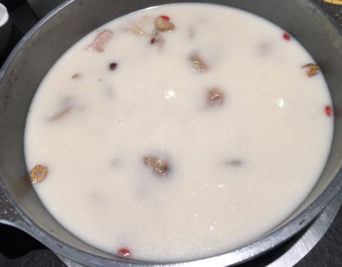 一家主打养生的猪肚鸡火锅,特色招牌是养生猪肚鸡汤,可以酌情加入少许白胡椒搭配食用,养胃驱寒,汤色呈奶白,比较浓稠,汤鲜味美,竹荪一家亲和油面筋虾滑是煲宫的亮点,煲仔饭也是人气菜品,值得一提的是煲宫点单服务十分人性化,不仅可以半例点单还可以酌情加料减料,无论是在菜品还是环境服务上都做到了精致。