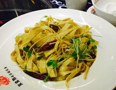 除了鱼还有丰富的涮菜,炸豆皮是特色,炸过的豆皮下锅充分吸收汤汁,香嫩无比
