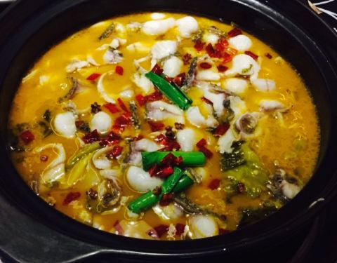 开遍合肥,一直很接地气,人气爆棚。吃前先挑鱼,新鲜黑鱼,个头都挺大,选好了现杀现片下锅一气呵成,保留了鱼肉最新鲜的味道。锅底鱼汤颜色雪白,鲜美浓郁。酸菜和酸萝卜与鱼肉完美结合,浓而不腻。