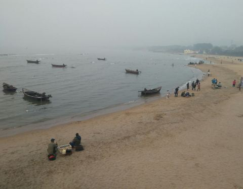 望龟亭位于秦皇岛北戴河区中海滩路靠近老虎石公园边上,亭子在路旁,亭子后面是一片海滩,早晨去时有很多捕鱼归来的小船停靠,人们在买卖鱼获。