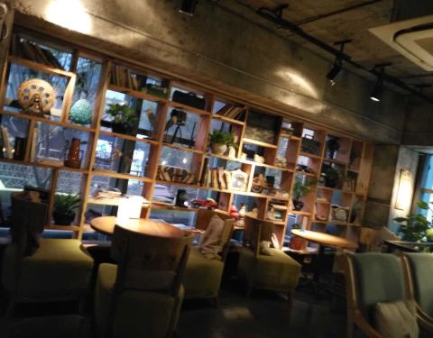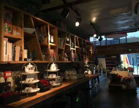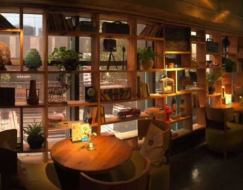 这家咖啡馆位于1912西区入口处,很好找。这里的环境很有格调,小资氛围满满。昏黄的灯光、放满书的装饰…