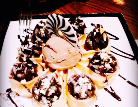 几天没来了kacao突然发现外面搞了个酒吧,搞的不丑,晚上有时间可以和朋友在这放松下看看球赛,今日点了个新品布朗尼华夫饼服务员推荐的明星产品,说的十分入味,因此就买了,吃起来还的确不错特别爽口,谢谢小妹妹的推介,服务也好。