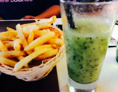 1912这边,常常和朋友一起来坐一坐,环境比星爸爸好好多,但是讲真,咖啡和其他饮品做的不如星爸爸。好在人少些,地方大些。之前喝过抹茶拿铁,蕉情拿铁,卡布奇诺,卡布当然不如星爸爸,星爸爸的卡布还是不错滴。蕉情拿铁,那都是什么鬼玩意,甜得要命,难喝的要死。今日点的深海之蓝,颜色很美妙,喝起来,也不咋地????也是甜,原本以为soda不会很甜的呢。朋友点的什么柚子茶和橙汁,橙汁酸的很,反正我们仨都没喝完??。点心吃过水果华夫饼,口味还行。饮料都是25-40,华夫饼也不便宜。