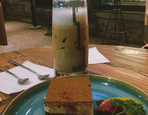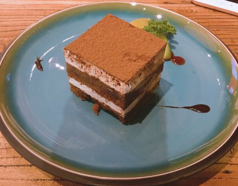 - 点的提拉米苏蛋糕里面也有比较浓的酒味,还挺好吃的。晚上外面的座位很抢手,服务员态度也很好