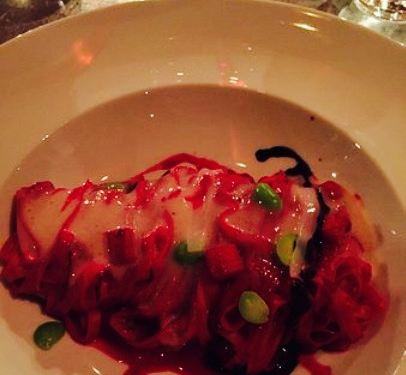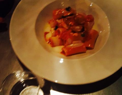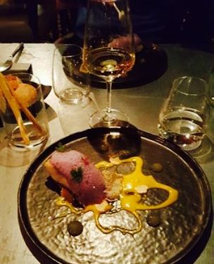 很喜欢吃这里的开胃菜,甜面包、墨鱼这两个都很好吃。这道菜看起来就很完美,鸭胸肉的酱汁给我非同一般的感受,餐后饭点也是很棒的,我喜欢,至于烟熏巧克力我建议你快点去尝一下,真的很好吃。而且这里的一个很大的好处就是酒非常便宜。