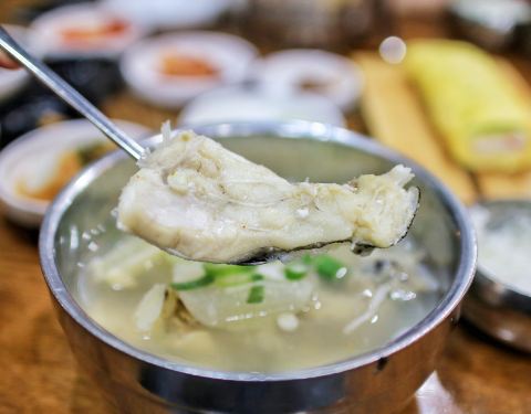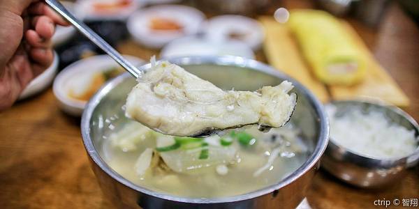 位于釜山海云台区的鳕鱼汤专门店,浓郁爽口的鳕鱼汤就是这家店的招牌菜单,如果觉得味道过于清淡,可以根据个人口味加入调料或者青阳辣椒。这家店24小时营业,可以在酒后来这里喝一碗鳕鱼汤,醒酒又暖胃。