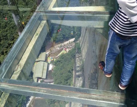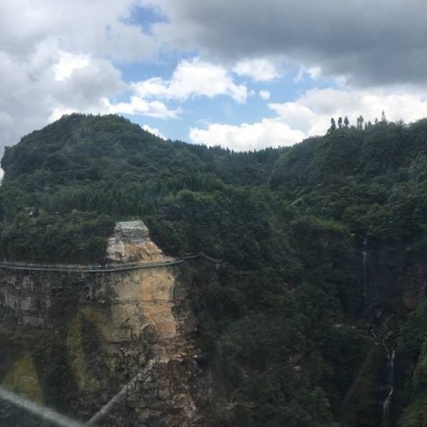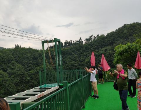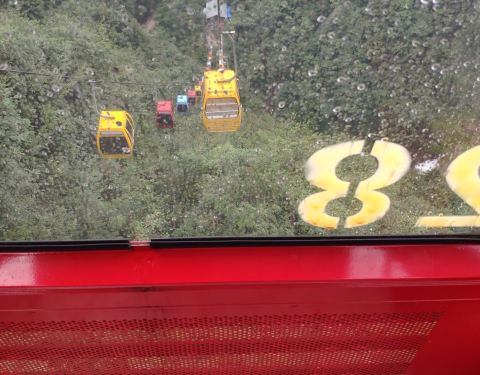 门票有点小贵,因为带着孩子,就买了往返的索道,以为能直接到玻璃栈道。结果索道只坐了5分钟,把我们送到了山谷里,然后需要从山谷爬到山顶,腿痛。