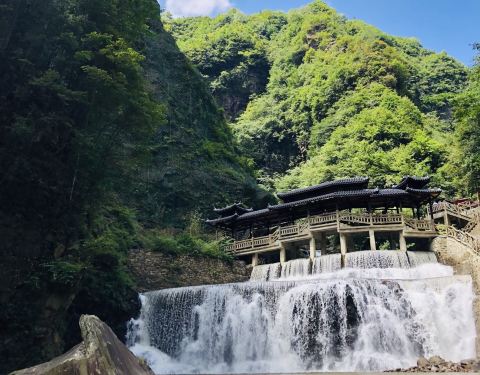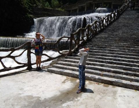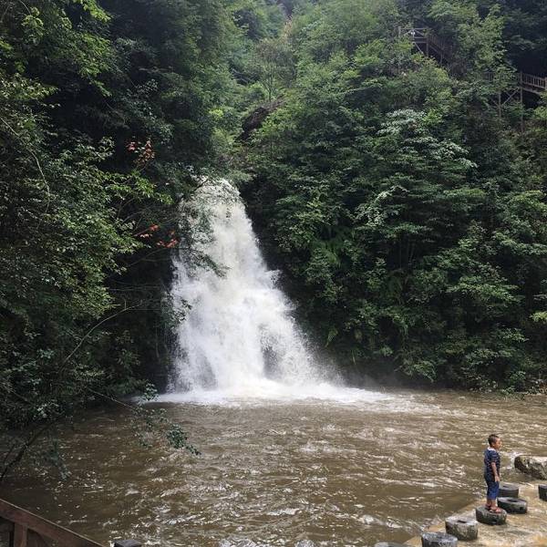 瀑布群多,玻璃栈道,荡秋千,爬山景色秀丽,就是漂流时间太短20分钟吧但是够刺激,景区管理水平有待提高