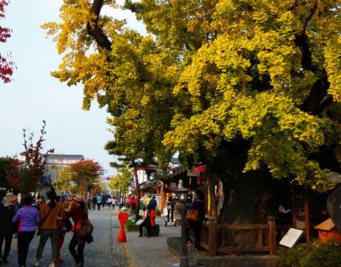 秋季韩屋村内的银杏树金黄一片,十分具有古典情调;
