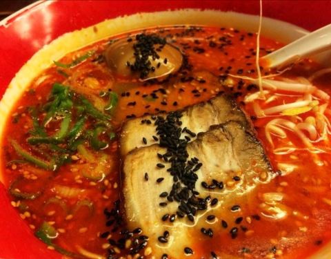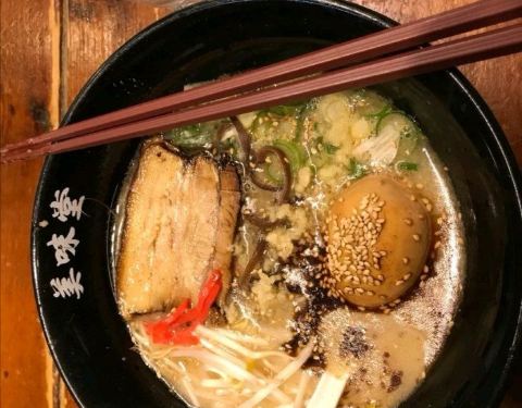 - 汤头特别浓郁的豚骨拉面,里面放了好吃的白切肉,溏心鸡蛋,上面的芝麻是点睛之笔哦