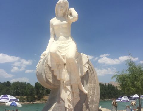 “天下黄河贵德清”,虽然早有耳闻,但见到还是蛮惊讶的。我们来贵德清清黄河水车广场这边,看到了清澈而平缓的黄河,据说这段清清黄河长约70多公里。在广场上,可以看到直径20米的巨大木质结构水车,蓝天碧水丹山,还有古朴的大水车,这样的黄河风情别处是见不丰的。在大水车不远处还有黄河少女雕像,不知道是否寓意为黄河到此处还是“少女时代”呢。有许多游客到此乘坐快艇游览,也是很愉快的事情。