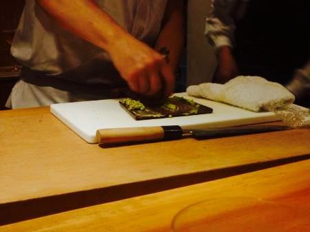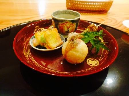 位于离神户北野异人馆不远的住宅区里,餐厅是割烹风怀石料理,开放式的厨房在品尝到美味食物的同时,还可以看到烹饪过程。特色菜白芝麻拌蔬菜,把当季的蔬菜用白芝麻酱来调味,这个季节使用的是淡路岛的鱿鱼和神户本地产的黄瓜,口感清爽。