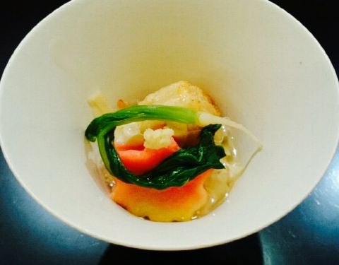 米其林二星的怀石料理,总体对得起米其林餐厅,里面到处都有小海鲜,挺不错的,虾米看着很小,吃起来的味道很不错,汤鲜的像河豚鱼的汤。