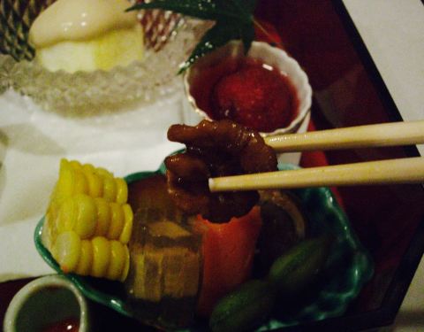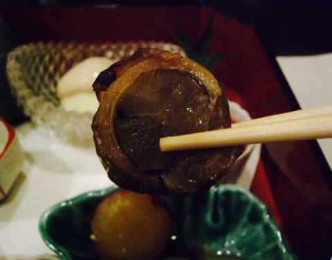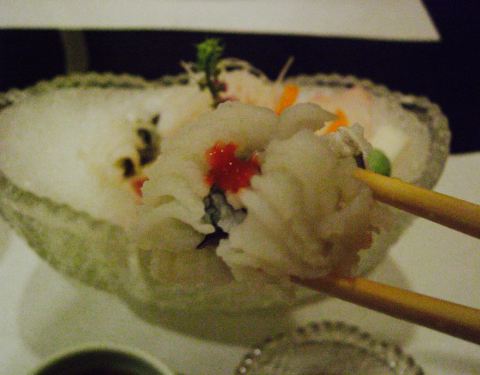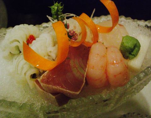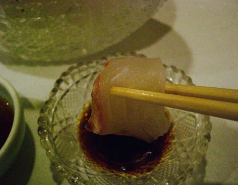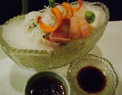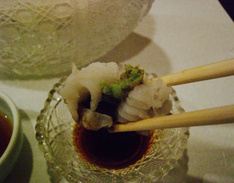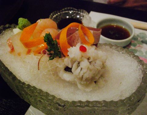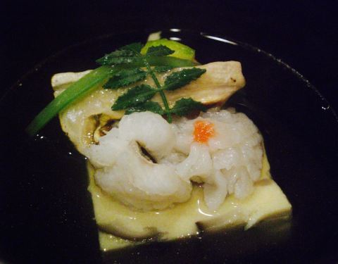 生鱼片是我第二次来这家店的主要原因,上次来的时候是3月份,熟人介绍的,运气好到居然看到《人偶》里的器皿,感动得我说不出话来,就是一味的尖叫。还有这次的烤串和清汤比上次的味道更棒了。
