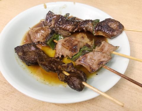 1968年开业的一家内脏串烧的老店。 价格十分便宜。 ▹内脏串 50日元 ▹心脏,肝,蔬菜 都是100日元 围坐在铁板吧台的顾客,可以从眼前的放着各种串烧托盘上,挑选出想吃的串烧,自己蘸上酱汁,然后由老板出马,细细得烤上一番。 这种特别接地气的方式,也让顾客和店主的爷爷奶奶更像是以朋友的身份在相处。气氛轻松温馨。