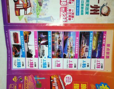 30元一人,24小时有效,可以在有效时间内多次上下车,可以在中途停车景点下车,游览后坐下一辆巴士30元一人,24小时有效,可以在有效时间内多次上下车,可以在中途停车景点下车,游览后坐下一辆巴士。1米4以下儿童免票,中途好长时间都是围着广州塔绕。送了免费耳机,可以在车上听导游广播语音。双层旅游巴士线...30元一人,24小时有效,可以在有效时间内多次上下车,可以在中途停车景点下车,游览后坐下一辆巴士。1米4以下儿童免票,中途好长时间都是围着广州塔绕。送了免费耳机,可以在车上听导游广播语音。双层旅游巴士线路在旅游巴士上拍的,绚丽,妖娆的广州小蛮腰。 展开