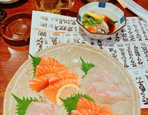 - 这家的刺身都很新鲜,是当天鱼市场里面进货的,所以晚上就有很多人来吃,白天开店比较的晚,里面的梅...