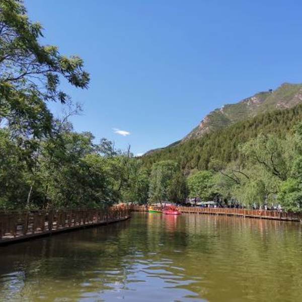 京津冀打卡景点,景区面积不大。门口停车免费。京津冀卡门票不包含玩水票。里面有儿童玩耍的免费滑梯等娱乐设施。景区中心可以划船50元半小时,四周围还可以烧烤,里面也有各种小吃就是价格偏贵。其中露天的泳池看着特别给力夏天玩水休闲的好去处。