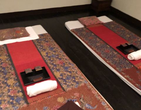一个人闲逛发现的,后来知道是拍泰囧的地方就进去看了下,环境不错,人比较多,最好提前预定,网上订的话有车接送,我离得比较近就自己定了第二天上午的。十点开始,景色没有晚上的好看,服务也没得说,全程很安静,放松。做之前给冰洛神茶(像酸梅汤),做完喝热姜茶,酥饼,总之我觉得不错,对了我做的是1小时传统泰式700株,值得体验下