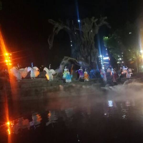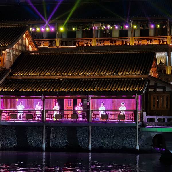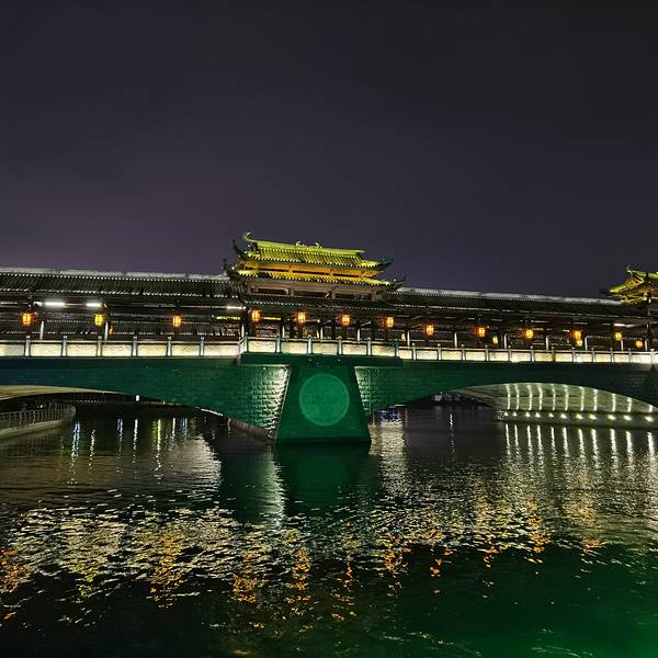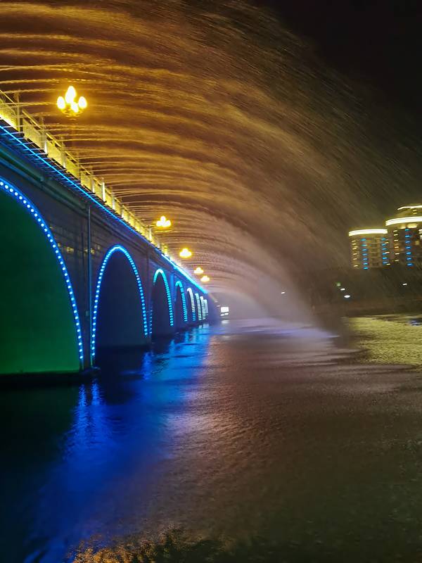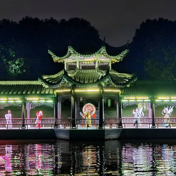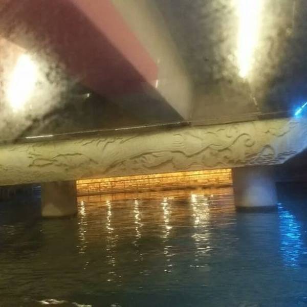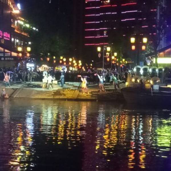 坐游船会经过9座各式各样的桥梁,能看到桥上各具特色的主题绘画和灯光,最重要的是城市的设计师在沿岸主要的点都安排了表演,有灯光水秀,有现代舞有本土汉剧,还能欣赏传统名剧《刘海砍樵》选段等等……坐在游船上就能惬意地欣赏河边的表演,一个小时的航程真是五光十色!第一次看到这样的表演形式,简直大饱眼福! 展开