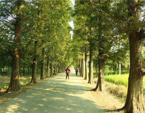 刚进大禹谷的时候,就让我眼前一亮,道路边的两排水杉,寂静美丽,就像欧洲的某条林荫小道