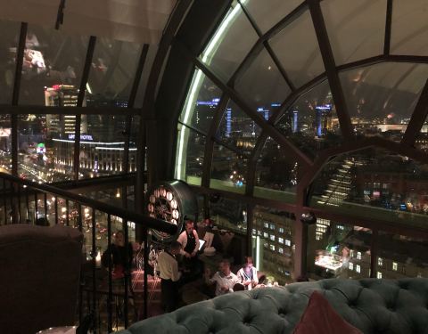 位于16楼,上楼中途要换电梯,进去后会有人帮你放衣服,菜的价格和国内上海比起来性价比很高,有中文菜单,但是菜单翻译有点问题,南瓜牛排其实就是南瓜,而且服务员不会说中文,但是服务员记忆力很好,点的菜他...位于16楼,上楼中途要换电梯,进去后会有人帮你放衣服,菜的价格和国内上海比起来性价比很高,有中文菜单,但是菜单翻译有点问题,南瓜牛排其实就是南瓜,而且服务员不会说中文,但是服务员记忆力很好,点的菜他根本不用笔记,我当时都不知道他是怎么记下来的,沙皇海鲜拼盘还不错,牛排也不错,一瓶依云矿泉水只要28元国内上海半岛要108一瓶,价格便宜,服务上也就不怎么样了,可能是因为饭店大了,在上菜的时间上把握的不是很好,而且倒水倒酒就倒了一次,不过比一般的饭店还是要好的,毕竟价格上还是很有优势的,而且还是米其林三星餐厅世界top18,环境也不错,全景天窗,里面有音乐,吃饭的时候交流声音也不用太在意,适合普通人去体验一下.