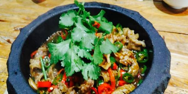 在这么偏远的地方还有这样一家比较高大上的餐厅还是有些意外惊喜的,上去二楼就是别有洞天啊。不过私房菜也是一般比较隐秘的地方,里面布置了好多植物大的小的,只不过周末的时候才有歌手驻场。那时去的是饭点,除了包厢有人用餐外,外边的只有我们一桌,倒是不错十分的清净。而且各个餐桌凳子设计都不一样的。你可以选择自己喜欢的款式。无论是餐具布置菜摆饰都很符合餐厅的调调。#米汤浸时蔬# 。米浆味是吃不出来啦,青菜稍微煮的有些老,但还是蛮清甜的。适合清谈口味的吃,毕竟总要有个素,#纸包排骨,端上来的时候服务员用刀帮你切开那层纸,热气腾腾的好诱人,味道很独特很开心,就是全部都是肉,骨肉相连的很少,而且偏甜,吃多了就有点而腻,分量很大,觉得怎么都吃不完。#豆浆煮鱼,以为真的是豆浆味道,其实不然,仍然是汤的味,鱼十分的爽口,重点是菜和摆盘的融为一体,吃起来很有意境。两个人吃这几个菜还剩余好多,价位是贵了点,不过量大,他家的米饭也入味的。