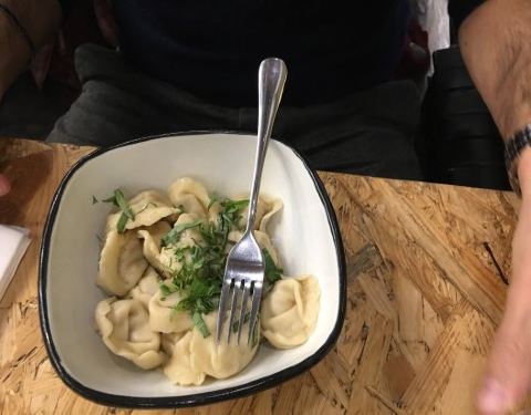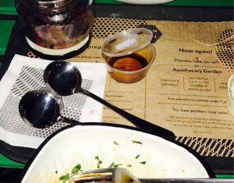 食物好的让我想再去一次。我们为三道菜还有苏打水和沙拉总共付了16欧元,是很便宜的。店里的经理是很友善的,而且这里会有英文菜单,你可以试试。要说莫斯科最好吃的猪肉水饺店大概就是这家了,馅料真的很不错。