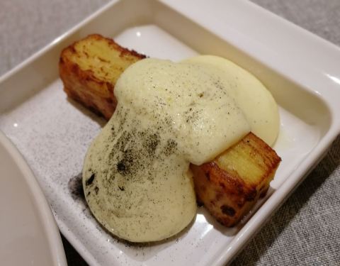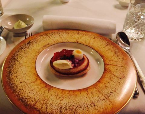 不愧是米其林带星的餐厅,环境和口味以及服务都是一流的。餐厅由国家博物馆改建而来,所以里面的雕塑,壁画还是有所保留的,件件都是艺术品。菜品也是相当精致的。