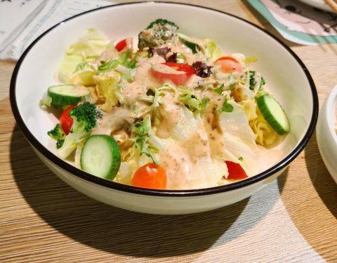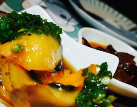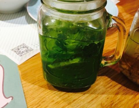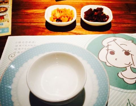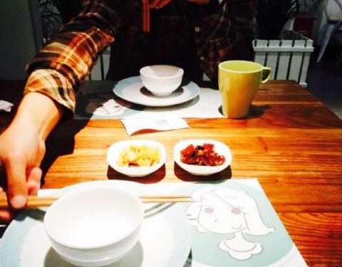 文艺小清新的家常菜馆,绿白相间的配色让人一见倾心。整个餐厅都是薄荷绿和纯白色调,就连餐盘都是白色和浅绿色为主,非常小清新,特别适合喜欢拍照的妹子们。餐厅的隔墙柜上摆满了书籍、盆栽,还有各种有趣的装饰物,墙上挂满了各种插画,整个餐厅给人一种“用心”的感觉。