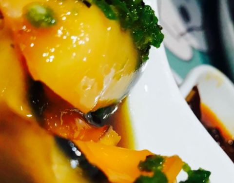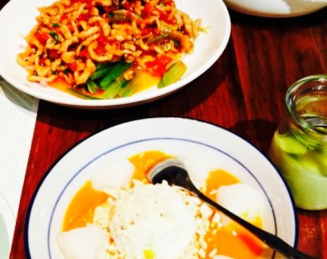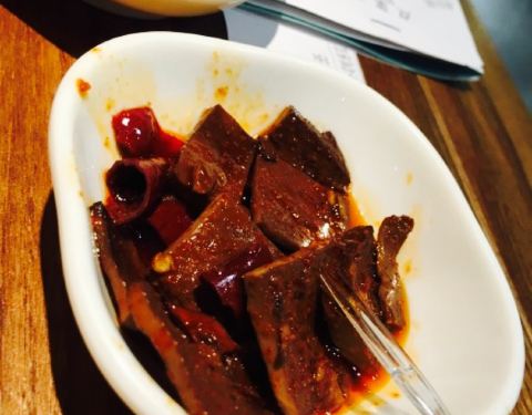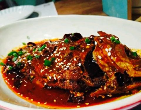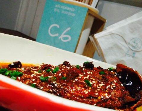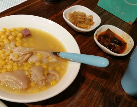 看攻略推荐的食堂,点了四个菜冷吃鲫鱼,脆皮鸡,当季菜腊肉闷笋,玉米猪手(汤)。冷吃鲫鱼,鲫鱼炸过用红油腌制,很美味,肉也不柴,非常的吃法,开心。脆皮鸡,很像北京烤鸭,不肥不腻,肉质细嫩,外皮酥脆。腊肉笋,太油了。太油了。每一口都满满的油,不健康,不过挺香的,下饭菜一道,嘿嘿。玉米猪手(汤),本以为是红烧猪手,结果上了一碗汤,看得我一脸懵??不过猪手炖的很烂,蘸着特制的酱料,味道挺好,推荐噢。