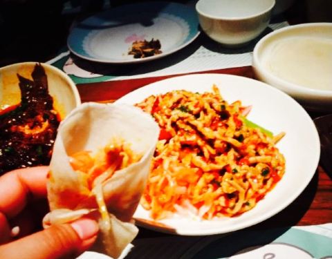 菜品种类不太多,只是做的都比较精美,两个人来吃刚好适合。就是等位的时间太长了,等一个小时是常见的。鱼想肉丝很爽口。里头还有酸萝卜丝和芹菜丝,配有小饼,可以像丝娃娃一样卷起来吃。??猕猴桃苏打水很好喝。