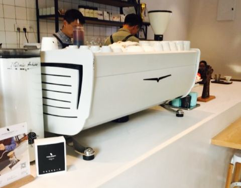 外观看上去很简洁的一家店,店内以白色为主打色,搭配原木桌子,简简单单。点的一杯拿铁一杯南非桑葚冰茶,一块蛋糕。拿铁好划算,才18,比起星爸爸的价钱,真的觉得好实惠。并且味道也很浓烈,据说是double的量呢。冰茶酸酸甜甜,是很舒适的夏日饮品,而且搭配蛋糕吃也可解腻。蛋糕是酸奶芝士,不功不过。下次还有冰滴和玫夏想尝试,只是店里座位不多,不知以后生意火爆了会不会没位子坐啊。
