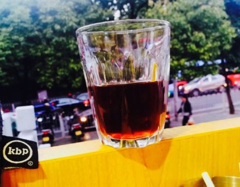 - 冰茶酸酸甜甜,是很舒适的夏日饮品,而且搭配蛋糕吃也可解腻。蛋糕是酸奶芝士,不功不过