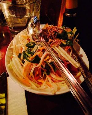 青木瓜沙拉和焦糖奶油是我很喜欢吃的甜品。这是这里做的最有名气的甜品,也是这家餐厅的招牌。几乎来这里的人都会点一份带回家给家人尝尝。环境是很好的,而且打扫的很干净。