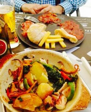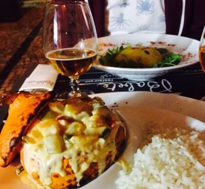 Really nice food and service. Our waiter was very friendly and helpful with recommending traditional Portuguese dishes. I came with a group of 8 and was able to make a reservation about an hour before arriving. The pork and potatoe dish was really good, as was the cod dish served in the loaf of bread. One of my friends was feeling unwell and did not eat any of his food, instead asking for a container to take it home. The server apologized but told us that they had no such container and there would be no way for him to take it home. I can understand that they do not keep containers but it was unfortunate in this instance and I thought it would be worth mentioning.