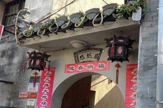 客栈的位置在宏村中部,不难找;老板非常热情,会出来接客人。客栈建筑古朴,同时又充满农家的温馨,阳光透过天井,从雕刻着狮子头的瓦片上穿过,落在院子里,映衬着墙角挂着的红灯笼,别有一番风味!