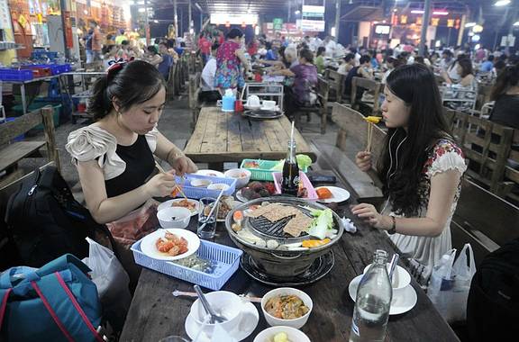 - 清迈北城门昌卜克夜市小摊Chang Phuak Gate,沿城外的7-11超市旁。