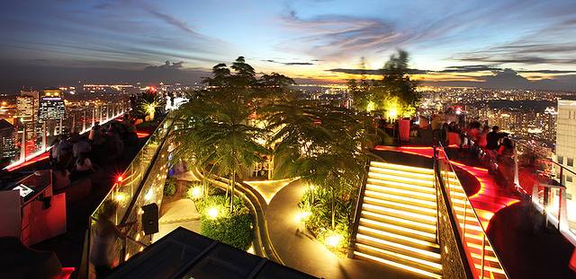 世界上最高的屋顶酒吧,拥有两个露天星空酒吧,提供丰富多彩的酒类和鸡尾酒。还提供各类美味菜肴,一边喝酒一边欣赏新加坡完美的夜景也是一种很好的放松方式。在这么美丽的夜空下享受美酒美食,一定可以让自己忘记所有烦恼。