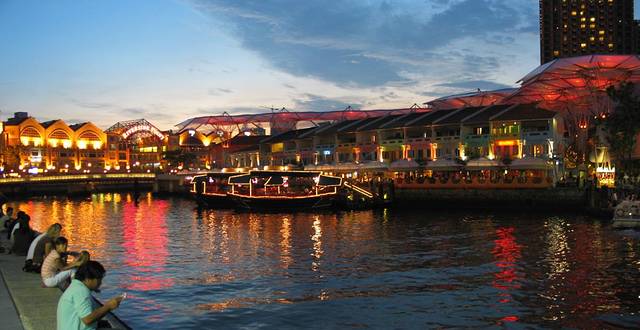 新加坡河对于新加坡来说,是一条非常重要的河流,而新加坡河畔的夜景也十分美丽。这一片是新加坡最早的殖民区和现代CBD区域,拥有全岛最密集的写字楼群。一座座高楼大厦的灯光洒在河面上,河水显得碧波鳞鳞。就连下雨的时候,雨在高楼灯光的照耀下,点点滴滴闪烁着银光。得益于干净的空气,即便是在夜晚,依然可以看到大朵云彩漂浮。新加坡河畔的克拉码头(Clarke Quay)和驳船码头(Boat Quay)聚集着大量的餐厅、酒吧,来到这里以后你会觉得码头似乎整天都处于节庆气氛中,街边的酒吧,餐厅让这里的氛围变得十分欢快轻松。在2008年时,在码头湖畔建造了高达165米的摩天轮,使得这片区域更加美不胜收。这里是朋友间、情侣两人度过夜晚生活的好地方,也是体验新加坡夜生活的最佳地点。【本图片由作者祎玮(为食主义)提供】