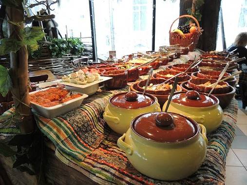 俄罗斯的黑面包外皮粗硬、口味酸咸、色如高梁面窝头。不了解情况的人以为这是粗劣食品,其实,黑面包既顶饱又有营养,还易于消化,对肠胃极有益,尤其适于配鱼肉等荤菜。这是因为,黑面包发酵用的酒母含有多种维生素和生物酶。初食者,会因黑面包的酸味感到不适,而吃久了,慢慢习惯了以后,便会爱不释“口”。