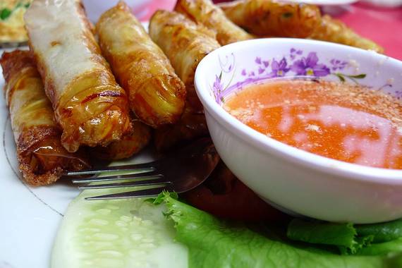 越南春卷是越南地道的美食佳肴。小巧可爱,吃下去,满口薄荷的香气,只一口就足以降服味蕾。它与中国春卷最大的不同在于饼皮是用稻米磨浆制成的米皮包裹,而不用薄面皮,馅料以虾肉、猪肉和当地蔬菜为主,以米皮包裹成约十厘米的小长筒形状油炸,吃时用手以生菜叶包裹春卷,沾鱼露食用,清淡爽口。是越南相当盛行的一道料理。