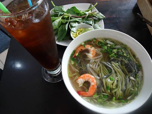 胡志明市人特别喜欢吃果条,就像河内人喜欢吃粉一样。果条有很多种:金边果条、沙爹果条、美托果条等等。一碗果条的主要成分包括米线、猪肉片、去皮虾、猪肝、洋葱、莴苣、豆芽,汤是用碎猪肉和猪肠炖出来的,气味芳香、油中带甜。果条一般都不辣,喜欢吃辣的食客可以自己添加辣椒酱。