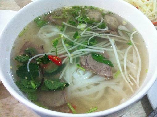 胡志明市的河粉也非常出名,通常选用牛肉搭配河粉。据说很久以前有一名小贩,专在火车站摆卖这种牛肉粉,因而大受欢迎,等候吃这种粉的人就由车尾排到车头。所以后来人们就称这牛肉粉做”火车头牛肉粉“,比喻其美味足以令人大排长龙。秘诀就是要趁着热气把豆芽菜拌倒汤里面,把金不换的叶子一片一片撕下来放到汤粉里面。牛肉是半生不熟的薄片,要在热汤里面烫熟,挤上柠檬汁。加上被誉为调味之皇的越南鱼露(Fish Sauce) ,把红色的尖椒用筷子在鱼露碟子里面捣碎,再加上新鲜薄荷叶,这才是最好吃的。