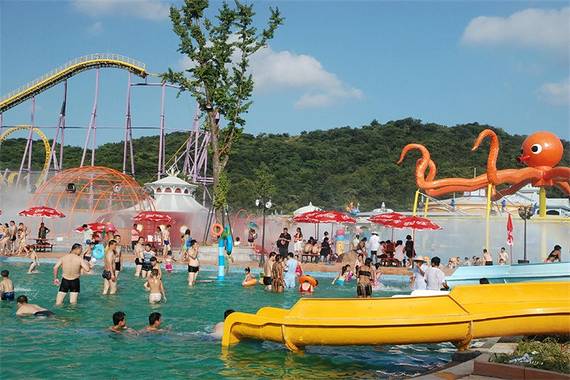 目前亚洲最大的露天水上乐园之一,适合各个年龄阶段的人群。欢乐水工厂、海盗船、林屋探秘、小恐龙滑梯、梦幻北极、群龙争霸、海盗滑道群等30多种惊险、刺激的水上游乐项目,安全并且趣味十足。