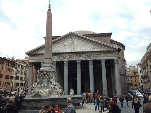 走在罗马的古城区中,我不得不感慨意大利人对于历史古迹的保护,随便路边的一块砖,一面墙都有着2000多年的历史。而它们都早已融入了现代生活的一部分。这样的感觉是很奇异的。万神殿是其中的代表。一座公元前27年就有的神殿,几经沧桑,却依然基本完好的存在于罗马的闹市区中。这份依旧,就是一个很大的奇迹了。而当你走入神殿的时候,对于那面一次成型圆拱屋顶的技术含量更是教人不得不感慨古罗马人的工程技术之高超。十分值得花上几十分钟参观一下这座辉煌的古建筑。