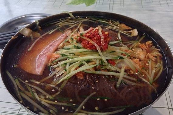 这里的朝鲜特色鲜明,烤明太鱼、石锅酱汤、冷面都很美味