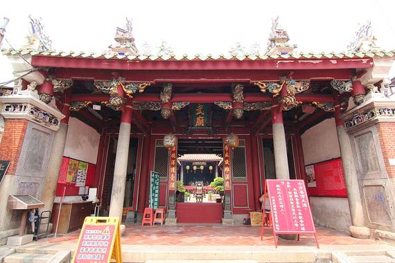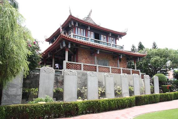 赤崁楼为荷兰人所建,初称为“普罗民遮城”,位于台湾台南市的中西区,今日所见的赤崁楼,大部分是汉人在荷兰城堡之上陆续兴建的儒、道教庙祠,包括海神庙、文昌阁。1960年又由大南门城内迁来九座赑屃碑,终成今日样貌。因此所称赤崁楼,是欧式普罗民遮城残迹,以及海神庙、文昌阁的混合体,今列为国定古迹。