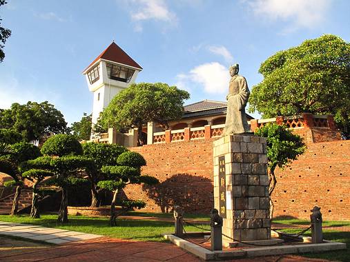 台湾城又称王城、赤嵌城、安平城。原为荷兰人所建,早期的汉人称荷兰人为红毛,所以把这座巍峨的城称为红毛城。日治时期改建后,称为安平古堡,沿用至今。它同时也是郑氏三代的居住地,证明那时候的辉煌时期,也有郑成功的雕像在此供奉。