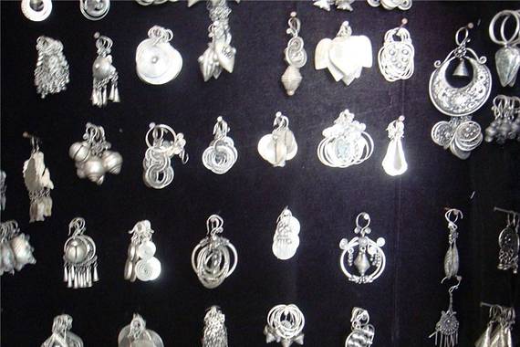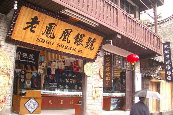 凤凰古城内大街小巷都有卖银饰的,这些银饰大都有精巧的做工,造型精美细致,种类也多种多样,有着浓郁的苗族风格。不过在买的时候可要注意辨别质量,争取合适的价格。如果是小摊子,价格就会开得很高,人多的地段不会折价给你,人少的时候或许可以。如果是在店里,可以看看是否有相关许可证。